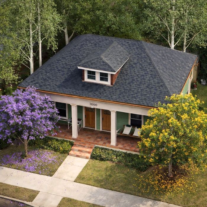 It is a single-story structure with a low-sloped roof, wide overhangs, and a front porch that wraps just enough to catch the afternoon breeze without inviting too much sun into the living room.