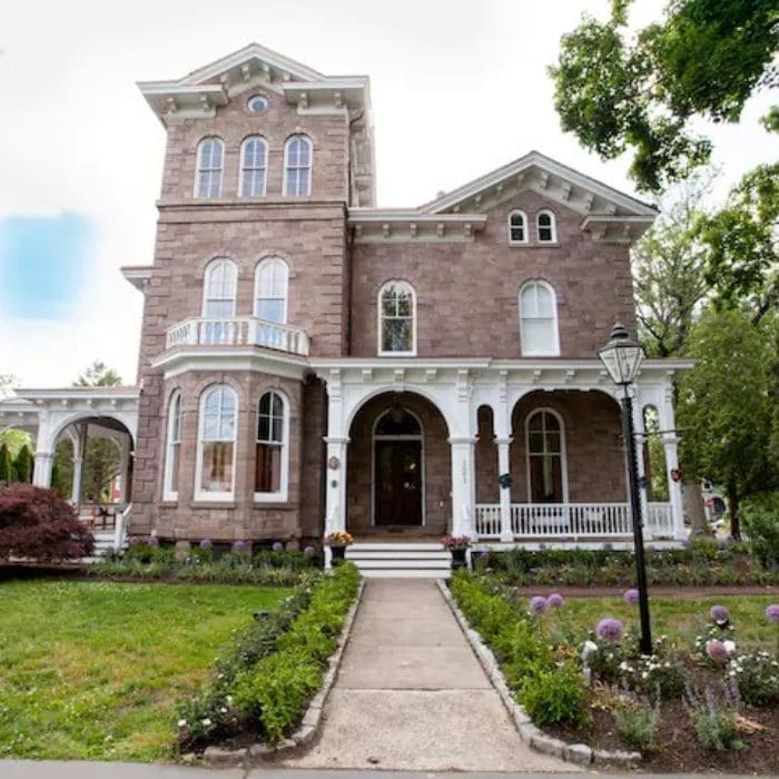 This home sits on a calm residential stretch in Lambertville, New Jersey, just a few minutes from the Delaware River and close enough to hear the town wake up in the morning without being pulled into its noise.
