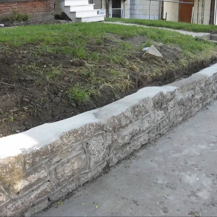 Back then, the original retaining wall was already failing, with cracked concrete blocks, missing mortar, and stones that had shifted just enough to make everything feel temporary.