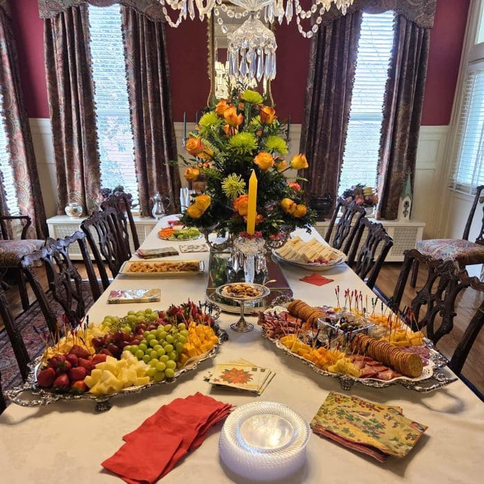 Nearby, long platters held cheese cubes, grapes, strawberries, crackers, and cured meats. Colorful picks and neatly arranged trays reflected Barbara’s signature attention to detail.
