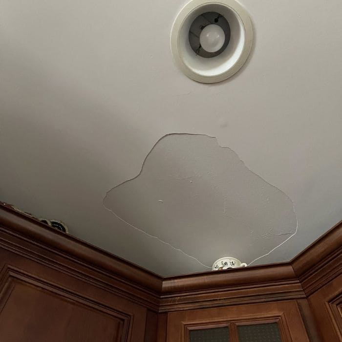 Moisture had been slowly collecting above that section of ceiling, likely from a combination of seasonal condensation and an old roof vent that didn’t quite seal the way it once did.